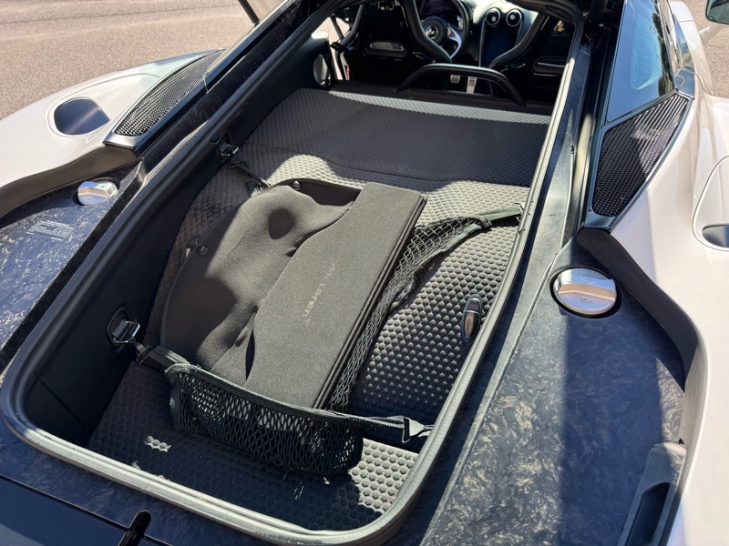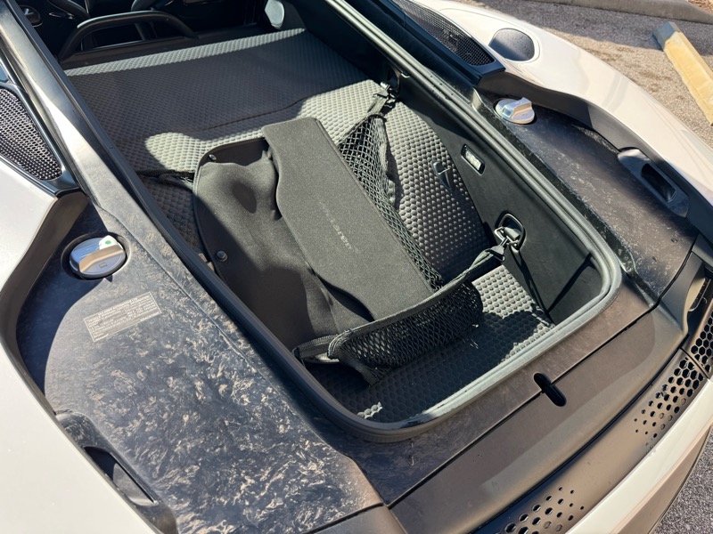 The two-seater is an evolution of the discontinued 570GT, the more civil version of the 570S which was new in 2016. The GT is longer, more powerful, and reimagined to compete with larger, heavier Grand Touring exotics like the Bentley Continental GT and Aston Martin DB11. To that end, visibility is good despite the raked rear glass and low stance. The rear cargo shelf holds an astonishing 15 cubic feet, in addition to the front trunk's five. That's impressive for a car with swing-up doors and the capability to reach 60 mph in under three seconds. Trunk space is optimized with McLaren's fitted luggage, but do beware of how hot it gets. The cargo, after all, sits above the engine.